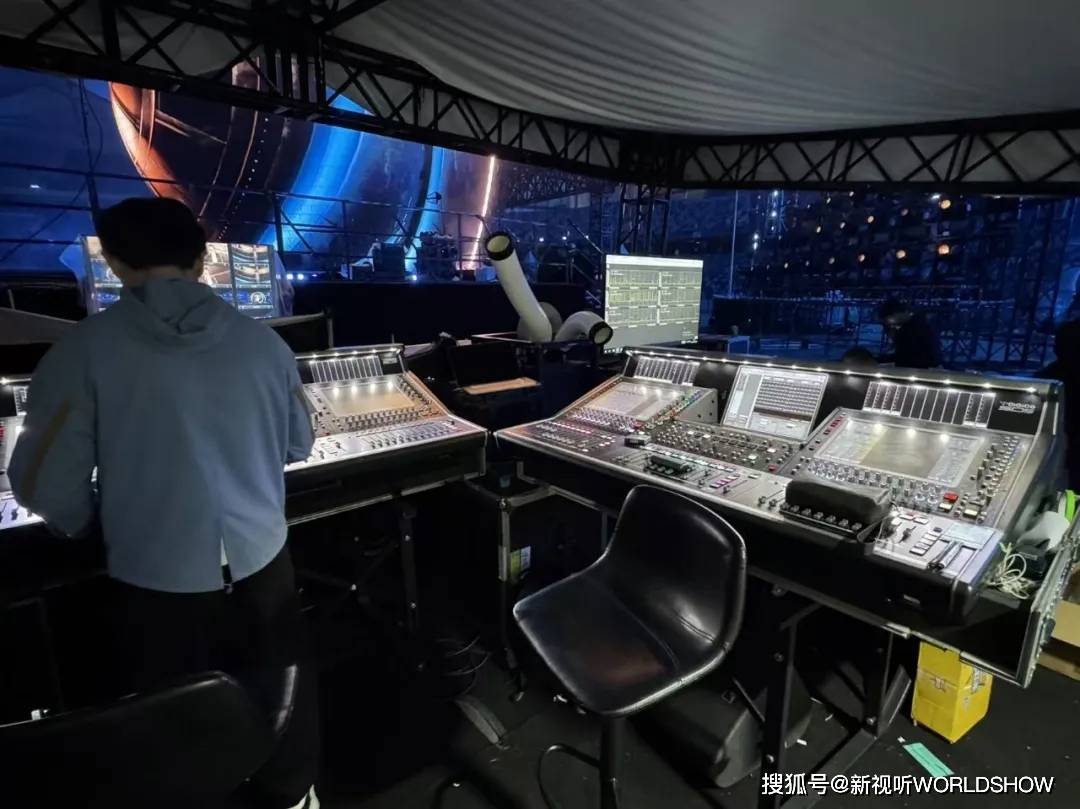 中区延时和后区延时则由4串扬声器线力求声音能够全方位覆盖整个场馆。本次的舞台结构呈T字形。主舞台前排和T字型延伸舞台前方使用了10组Kara II进行补声。同时在主舞台前方地面左右堆叠了共计36只KS28超低频扬声器,提供足够的低频下限支持。并确保前区观众获得清晰、细节饱满的听觉体验。