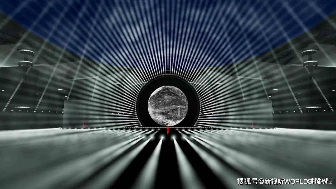 灯光设计总监:“在起初设计创作过程中,我一直在寻找一个恰当的灯光支点,既能和鸿蒙契合,又能和整个舞台的设计语言保持高度统一,我们联想到了鸿蒙的开机动画里,‘鸿蒙星环’既简洁又有力量感,不但充分诠释了万物互联的哲学美感,又有极高的辨识度。这些可能都满足了设计预判和需要。既然锁定了这个设计支点,就想将这个造型充斥到整个体育场的每个角落。让所有的观众都有‘星环’的概念。